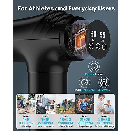 [Prime] AYURA 30-Speed Deep Tissue Massage Gun w/ 6 Attachments (Black) $16.99 + Free Shipping