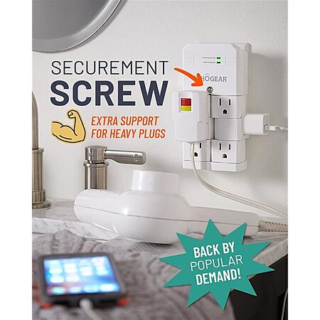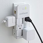 Surge protector that attaches directly to an existing wall outlet. I like this one since it has a hole for a mounting screw so that you can anchor the unit directly in using the screw hole that secures the wall plate. (Not pictured, but they have updated the model so that it is included.) Also has swivel outlets that turn 90 degrees. (Some wall plates will have two screws, top and bottom, some will have one in the center. This is for the latter.)