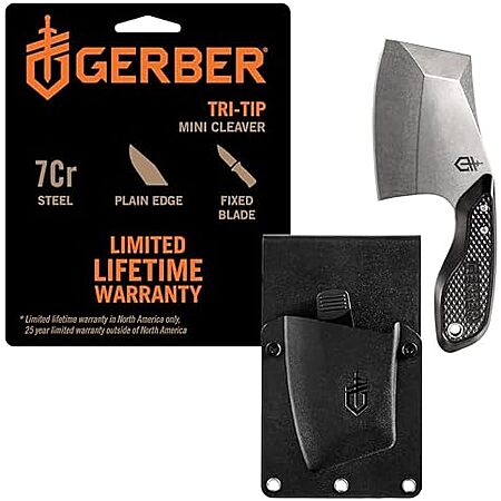 Amazon[amazon.com] has Gerber TRI-Tip Mini Cleaver Fixed Blade w/ Sheath, Black for $23.71 - $7.12 when you 'clip' the coupon on product page = $16.59. Shipping is free with Prime or on $35+ orders.