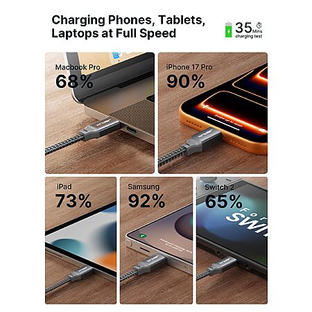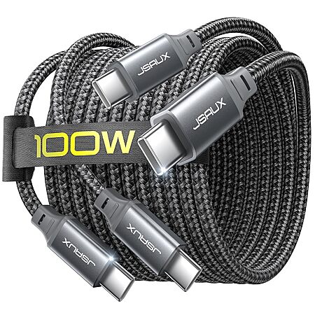 $6.24*:2-Pack 6.6' Jsaux 100W USB-C to USB-C Braided Fast Charging Cable