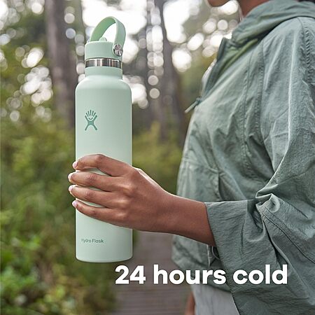 - 24 OZ OAT TAN STRAW BOTTLE: A 24 oz Standard Mouth water bottle with small drinking spout with Hydro Flask's leakproof Flex Straw Cap—easy to fill, easy to drink. Open it up, add your ice, and flip to sip. The insulated stainless steel keeps it cold for up to 24 hours.