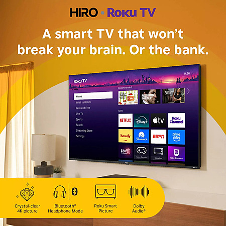 Four times the resolution: Give your favorite movies and shows four times the love with pristine 4K picture on this 65-inch smart TV. With Roku Smart Picture, Hiro automatically chooses the right picture mode for whatever you're watching.