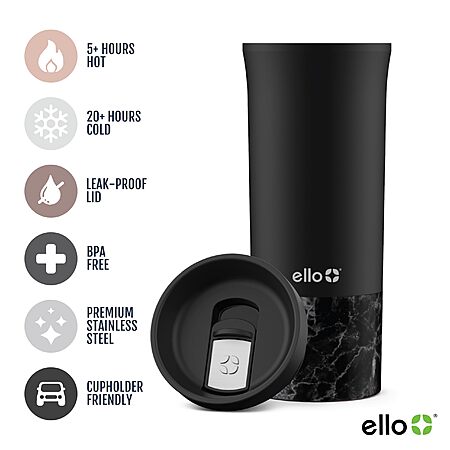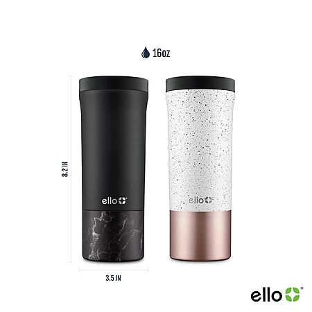 16-Oz Ello Miri Vacuum Insulated Stainless Steel Travel Coffee Mug (Black Marble or Speckle Rosegold) for