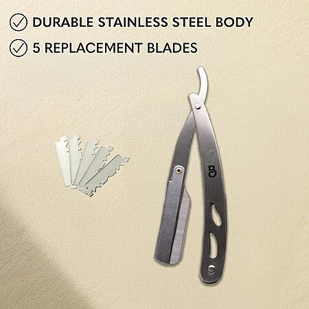 $5.99*:The Beard Club Straight Razor for Men - Navajas Para Barbero - Barber Straight Edge Razor Kit - Single Derby Blade Cutthroat With 5 Replaceable Stainless Steel Blades