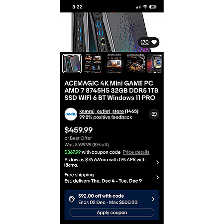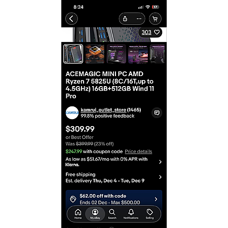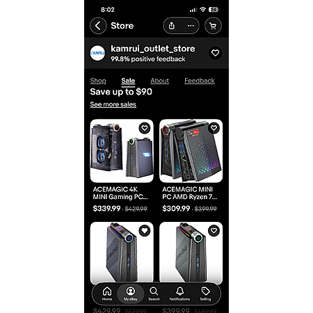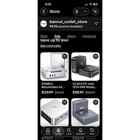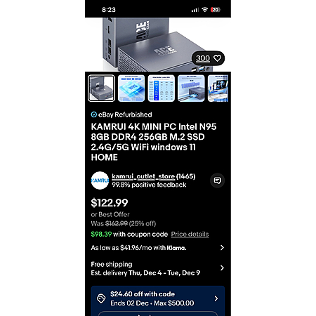 https://www.ebay.com/itm/354907431718 - Refurbished KAMRUI 4K MINI PC Intel N95 8GB DDR4 256GB M.2 SSD 2.4G/5G WiFi windows 11 HOME