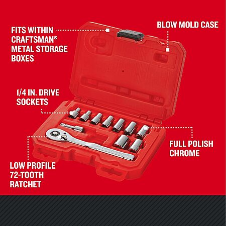 11-Piece Craftsman Mechanics SAE 1/4" Drive Ratchet Tool Set