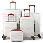 Zimtown Luggage Sets 5 Piece Hardside Expandable Suitcases with Spinner Wheels and TSA Lock, Beige / Deep Green for $79.99