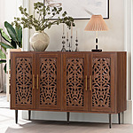 Model: HLR 48" Accent Cabinet with 4 Doors, Vintage Hollow Carving Storage Credenza, Sideboards and Buffets Cabinet for Living Room, Kitchen, Dining Room, Entryway,Brown