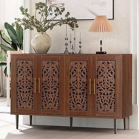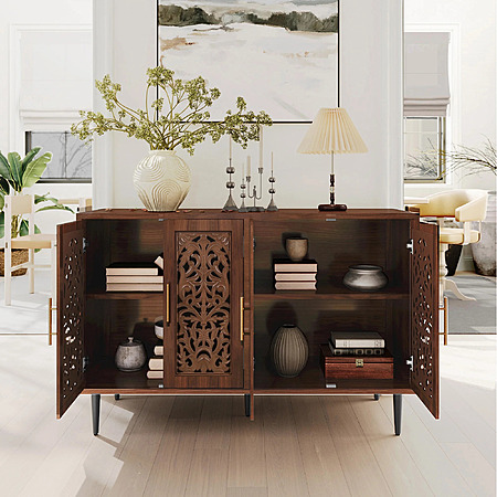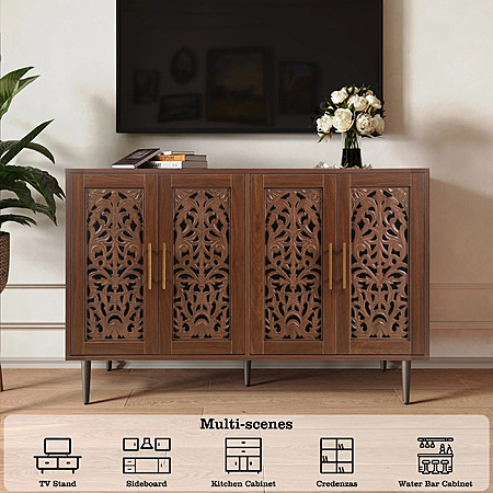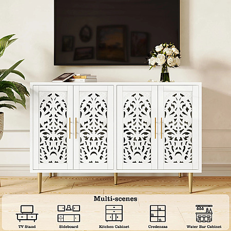 48" HLR Vintage Accent Hollow Carving Storage Credenza Cabinet w/ 4 Doors (Brown, Greeb, White) $185.99 + Free Shipping