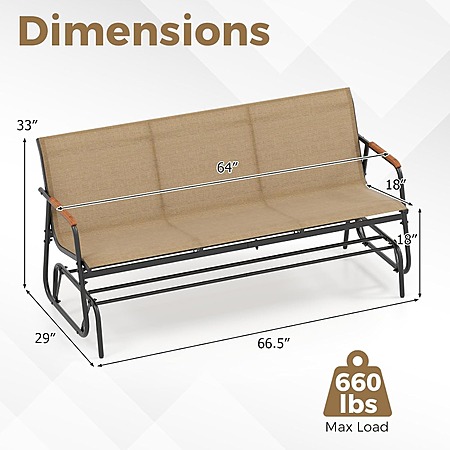 Tangkula via Amazon [amazon.com] has Tangkula 66.5'' 3-Person Patio Glider for $86.99. Shipping is Free.