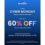 Breeze Airways Cyber sale offers up to 60% off base fares with the promotional code below, depending on the date of travel(s). .