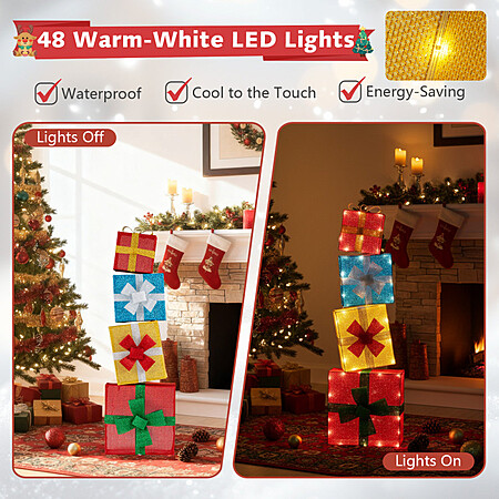 Costway 4-Pack Stacked Lighted Gift Boxes Decoration $47 + Free Shipping