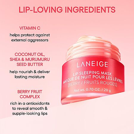 The LANEIGE Lip Sleeping Mask is currently on sale for $19.20 (20% Off the $24.00 List Price) on Amazon. This is the highly popular Korean skincare leave-on mask that has earned an "Amazon's Choice" badge and has been bought by 40K+ users in the past month!