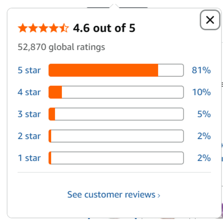 - Rating: Excellent 4.6 out of 5 stars from over 52,000 ratings.