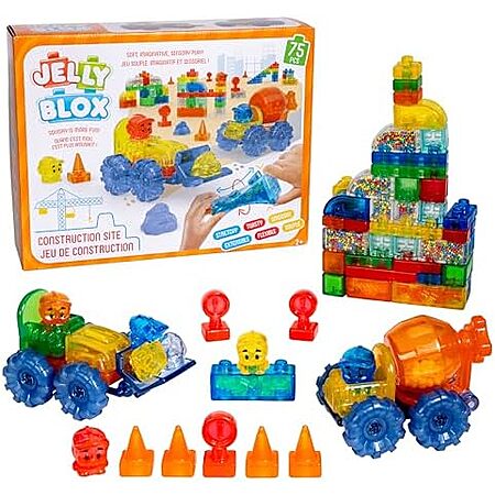 Model: Jelly Blox Construction Site Set | Includes 75 Pieces | Toddler & Preschool Building Blocks Kids Can Squeeze, Stretch, Squish | Safety Tested & Ouch-Free | Tactile, Sensory Play Toy for Ages 2+