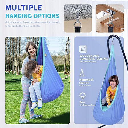 - Fun And Sensory: OUTREE Kids Pod Swing Seat will give children a peaceful and warm place to play, and provide kids a sense of safety while at the same time provide soothing sensations that can help them regulate sensory and relax