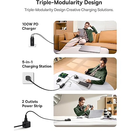 )Baseus 100W 5 in 1 Detachable Travel Power Strip (4x USB, 1x AC) w/ 5' Extension Cord $23.39 + Free Shipping w/ Prime or orders $35+