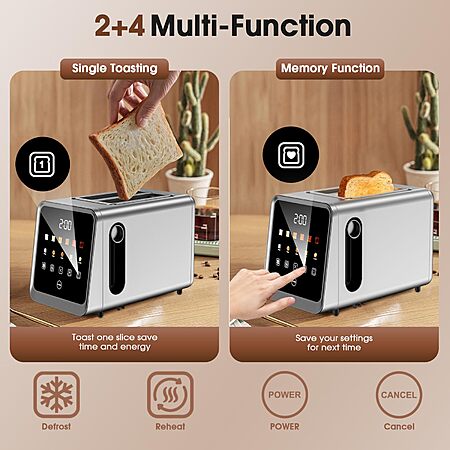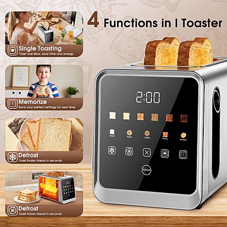 - The intuitive touchscreen lets you quickly select your preferred bread type and toasting level while the countdown timer tracks the progress so you can multitask with ease — perfect for your busy mornings!