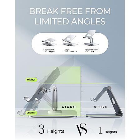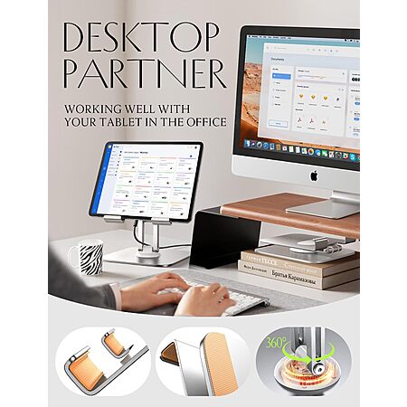 Lisen Adjustable 360-Degree Rotation Tablet Stand Holder (up to 12.9", Silver White) $8.99 + Free Shipping w/ Prime or on $35+