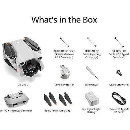 NEW) DJI Mini 3 Drone with 4K Camera - 38-min Flight Time, up to 32800ft (10km) Video Transmission, True Vertical Shooting, GPS Auto Return Integrated (DJI RC-N1)