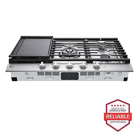 LG 36” Smart Gas Cooktop with UltraHeat™ 22K BTU Dual Burner and LED Knobs $899.10 + Free Shipping