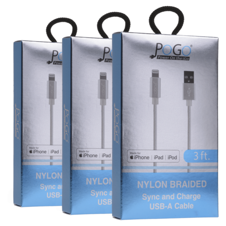 3-Pack: 3ft. Pogo Nylon Braided Sync And Charge USB-A Lightning Cable $5 + Free Shipping