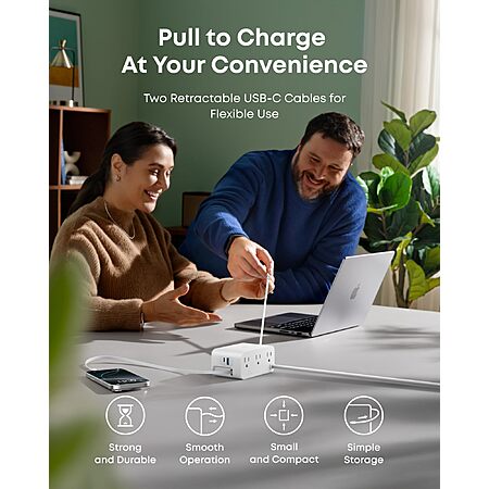 Model: Anker - Nano Charging Station, 7-in-1 100W Power Strip, 2.3 ft InstaCord Retractable Cable, 3 USB-C, 1 USB-A, 3 AC (Non-Battery) - White