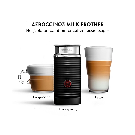 - Includes Aeroccino 3 milk frother, 12-capsule tasting back of Nespresso Vertuo capsules