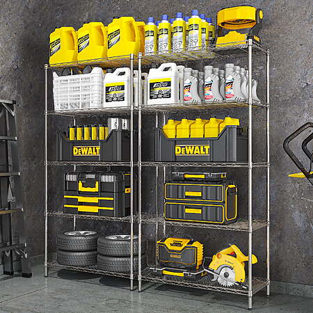 Walmart [walmart.com] has 5-Tier Ktaxon Wire Shelving Unit Storage Rack (Silver Gray, 30" x 14" x 60") for $36.99. Shipping is free.