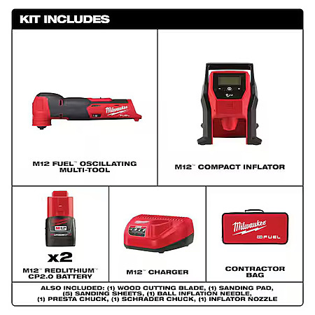 Milwaukee M12 Fuel Oscillating Multitool Kit with 4.0 Ah Battery and Inflator $209 @ HomeDepot