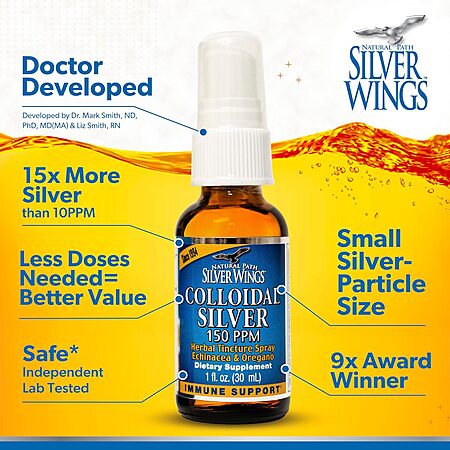 1-Oz Natural Path Silver Wings 150ppm Colloidal Silver Herbal Tincture Spray w/Echinacea & Oregano $6.62 w/S&S + Free Shipping w/ Prime or on $35+