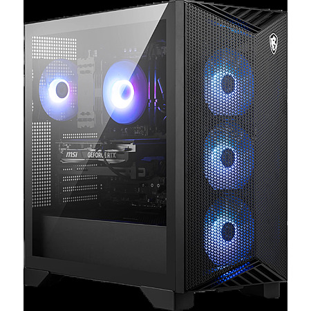 The MSI Aegis R2 C14NVK5-1624US desktop features an Intel Core i5-14400F processor and NVIDIA® GeForce RTX™ 5050 8GB graphics for smooth performance. Built on the H610M-G motherboard, it includes 16GB DDR5 memory, a 1TB SSD, and built-in Wi-Fi 6E and Bluetooth 5.3. Includes USB 3.2 Gen 1 Type A, USB 3.2 Gen 1 Type C, and USB 2.0 ports, HDMI and DisplayPort outputs, and a 650W 80+ Gold PSU. Windows 11 and an MSI gaming keyboard and mouse are included.