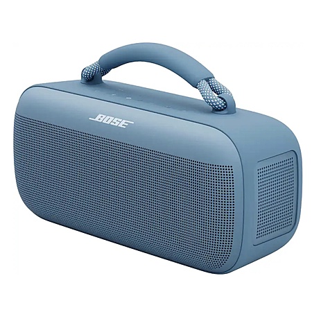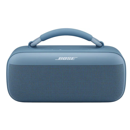 Whether you're the go-to DJ in your crew or a curator with the best playlists, the Bose SoundLink Max Speaker is the ultimate party starter. The stereo sound and deep bass turn good times to the max, letting you feel the music from your head to your toes. And with a trendy removable handle, you can take the party anywhere. Water and dust-proof features mean it's perfect for a poolside, beach, or rooftop hang. And when someone spills a drink or you run into unexpected showers, it never knocks the vibe. Amp up the party even more when you link two SoundLink Max Speakers. Choose Stereo Mode for left and right channels, or go for Party Mode for the biggest, boldest sound. Thanks to the epic battery life, you can keep bumping the playlist for up to 20 hours*, so the party can start in the day and carry on through the late night. Phone battery is running low? The USB-C port has got you covered. Power up from the speaker's built-in battery. Get yours in Black or Blue Dusk.