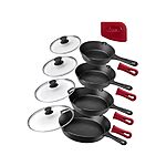 Cuisinel 6"+8"+10+12"-Inch Cast Iron Skillets Set + Glass Lids + Silicone Handle Grips - Pre-Seasoned Frying Pans $25