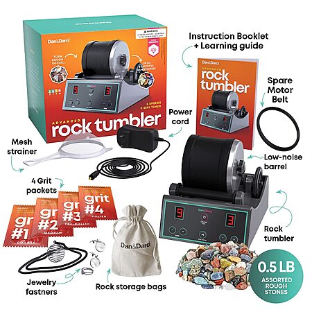 Model: Advanced Professional Rock Tumbler Kit - with Digital 9-Day Polishing Timer & 3 Speed Settings - Turn Rough Rocks into Beautiful Gems : Great Science & STEM Gift for Kids All Ages : Geology Toy