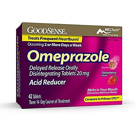 Amazon[amazon.com] has 42-Count GoodSense 20mg Omeprazole Delayed Release Tablets (Strawberry Flavor) for $8.99 - 20% when you 'clip' the coupon on product page - 5% when you check out via Subscribe & Save = $6.74. Shipping is free with Prime or on $35+ orders.