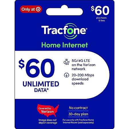 Model: Tracfone Unlimited Home Internet $60 30 Day Phone Gift Card (Email Delivery)