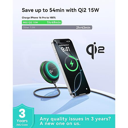 [AC] $9.87: INIU Qi2 Certified Magnetic Wireless Charger, 15W (Adapter Included) at Amazon
