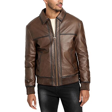 Guess Men's Ravi Coach Faux Leather Jacket, Coarse Brown, for $84