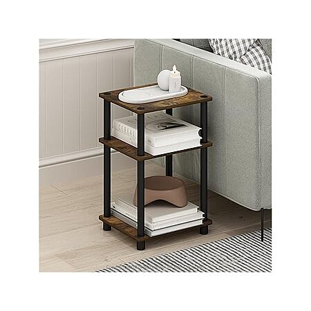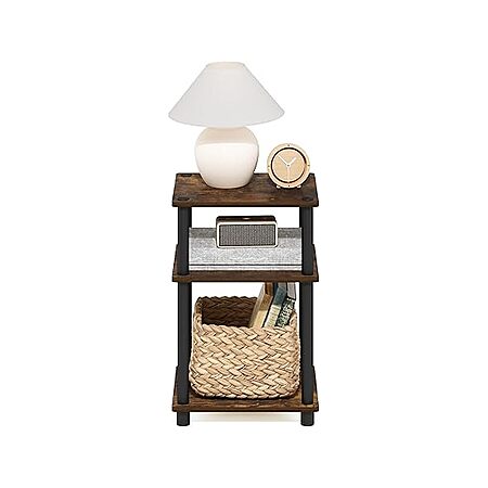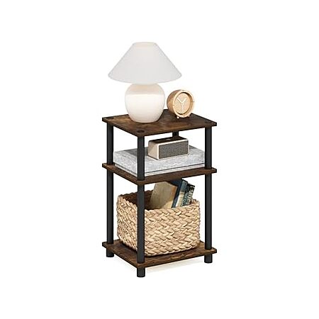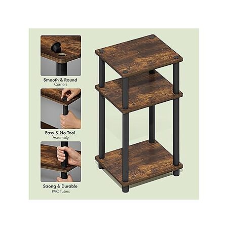 $8*: Furinno 3-Tier JUST Side Table Round Pole-11.5 (D) x 13.4 (W) x 22.8 (H) Amber Pine/Black