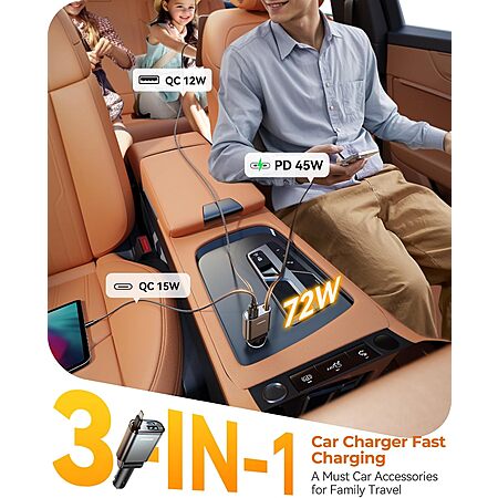 Joyroom Retractable 3-in-1 Up to 72W Retractable USB-C Car Charger from $8.49 + Free Shipping w/ Prime or on $35+