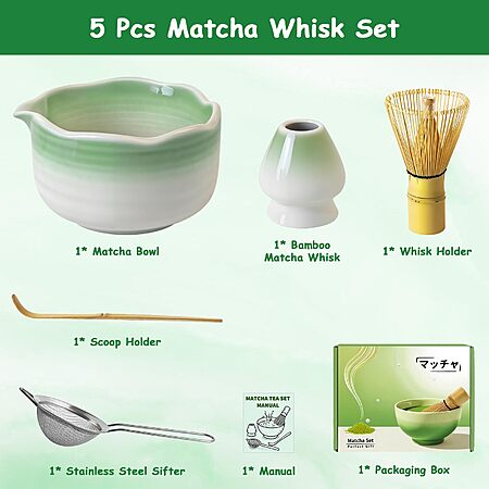 5-Piece CL FUN Matcha Whisk Set (Green) $6.98 + Free Shipping w/ Prime or on $35+