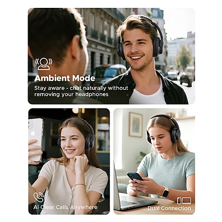 • Hybrid active noise cancellation and customized adaptive modes