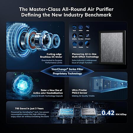 Model: 2300 ft² Energy Star Air Purifiers, AEOCKY Proprietary YearChange Filter Tech, with Multi-Effect Filter, Washable Pre-Filter, Scent Capsule, Air Quality Monitor, for Home Large Room bedroom Pets Odor
