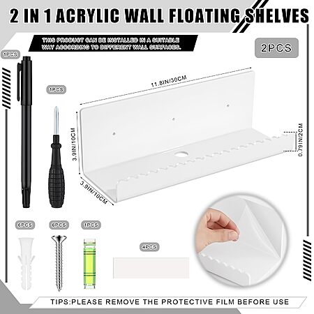 2-Pack Zioffiel Acrylic Adhesive Wall Floating Shelves (White) $7.99 + Free Shipping w/ Prime or on $35+