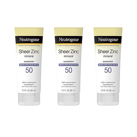 Neutrogena Mineral Sunscreen Sheer Zinc Oxide Dry-Touch Lotion, Broad Spectrum Sunblock SPF 50, Water Resistant Sunscreen For Sensitive Skin, 3 fl. oz, 3 Pack for $22.99