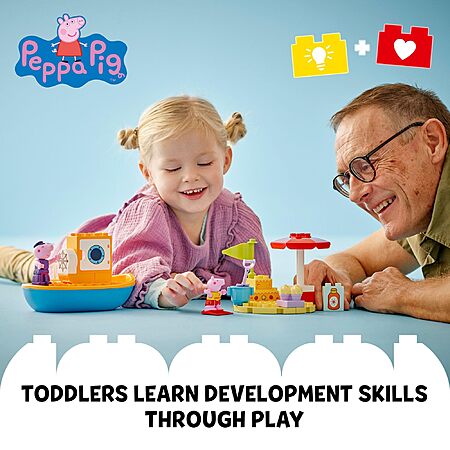 - Beach and boat water toy fantasy playset – Toddlers ages 2 and up set sail on a beach adventure with the LEGO DUPLO Peppa Pig Boat Trip inspired by the TV show