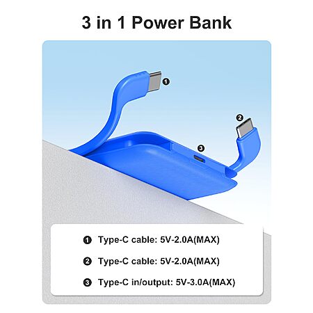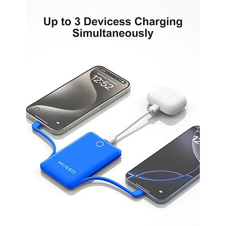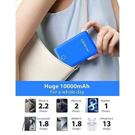 miisso Power Bank 10000mAh Slim Portable Charger w/ Built in Cable (Various) $11.49 + Free Shipping w/ Prime or on $35+