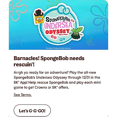 Burger King: SpongeBob's Undersea Odyssey, win crowns or BK offers