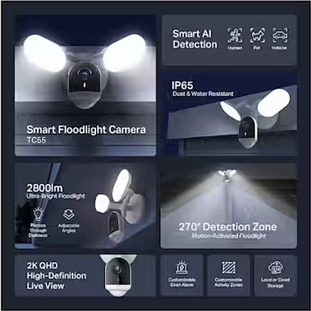 Tapo 2K QHD Wi-Fi Smart Hardwired Outdoor Floodlight Security Camera, Smart AI Detection, 2800 Lumens, Motion-Activated $79.99
